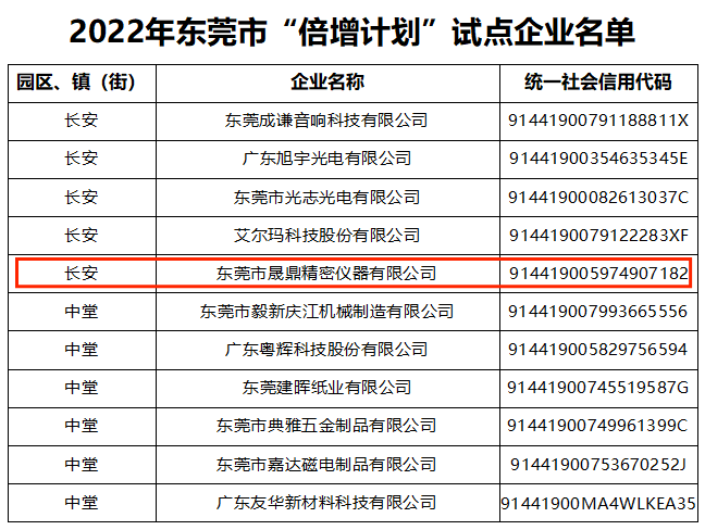 喜報 | 晟鼎精密/達(dá)因特入選2022年東莞市“倍增計劃”試點企業(yè)