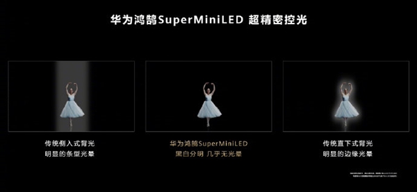 華為在7月29日發(fā)布華為智慧屏V75 Super,采用華為自研的鴻鵠SuperMiniLED精密矩陣背光解決方案,其使用的MiniLED芯片的面積(0.075mm2)僅為傳統(tǒng)LED燈珠面積(9mm2)的1/120,75吋的屏幕下放置了高達(dá)46080顆MiniLED芯片。